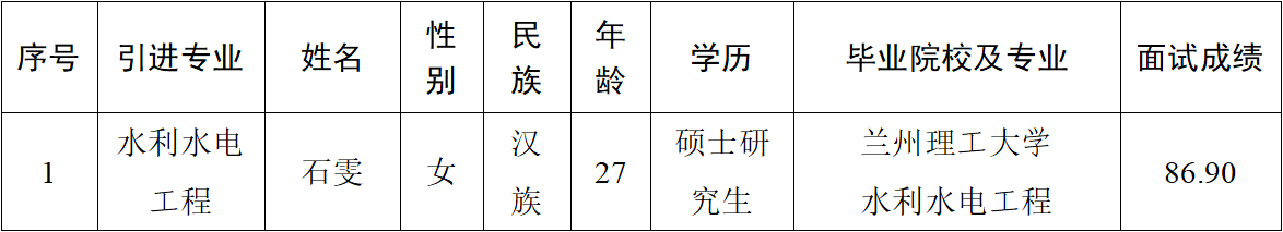 2023-09-03根據(jù)《平?jīng)鍪?023年就業(yè)見習(xí)崗位公告(第四期)》,經(jīng)組織報(bào)名、資格審查、筆試、面試、考察、體檢等程序,擬確定辛佳鎂同志為見習(xí)對象,現(xiàn)予以公示。一、公示對象簡要情況二、公示和受理反映時(shí)間公示時(shí)間:2023年9月4日至9月8日,共5個(gè)工作日受理時(shí)間:每